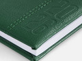 Еженедельник с твердой обложкой с поролоном из искусственной кожи, дополнен декоративной строчкой, капталом и ляссе в цвет.