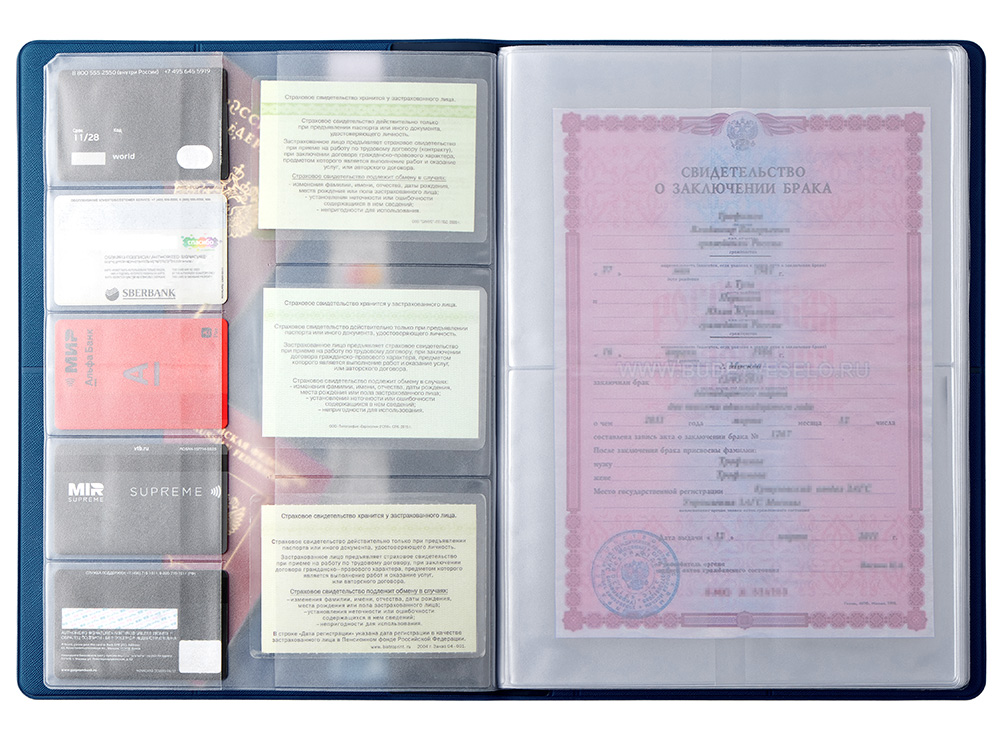 С ним свидетельства о рождении, браке и др. важные документы будут рассортированы и доступны для просмотра, будучи помещенными в прозрачные кармашки из пленки ПВХ.