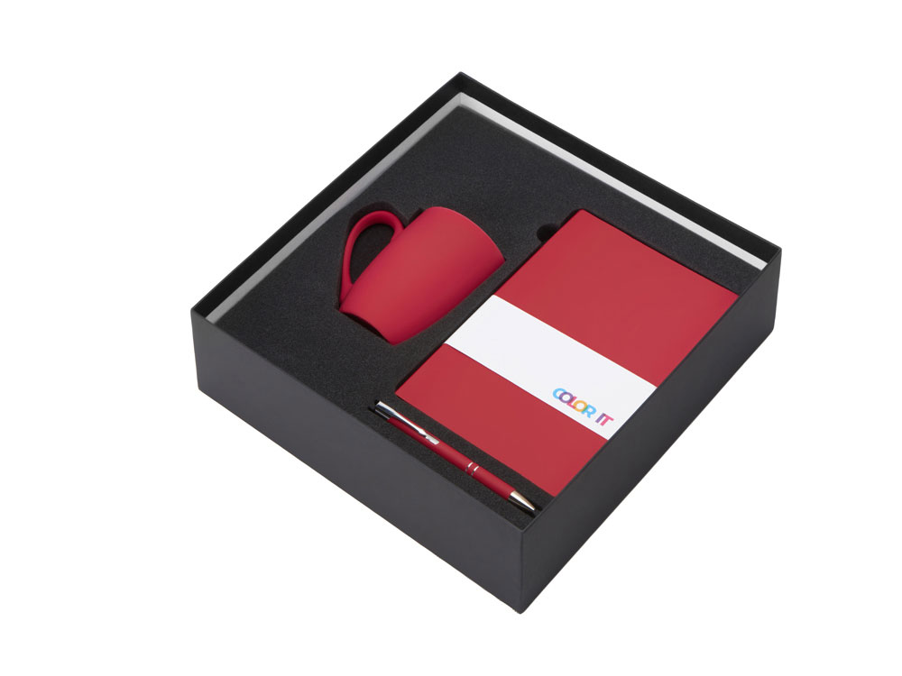 Подарочный набор с блокнотом С1, металлической ручкой и кружкой, красный