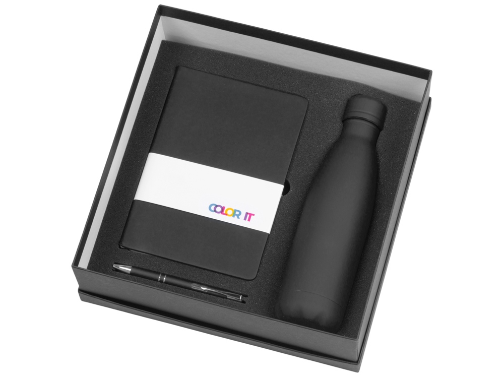 Подарочный набор с блокнотом С1, металлической ручкой и термобутылкой, черный