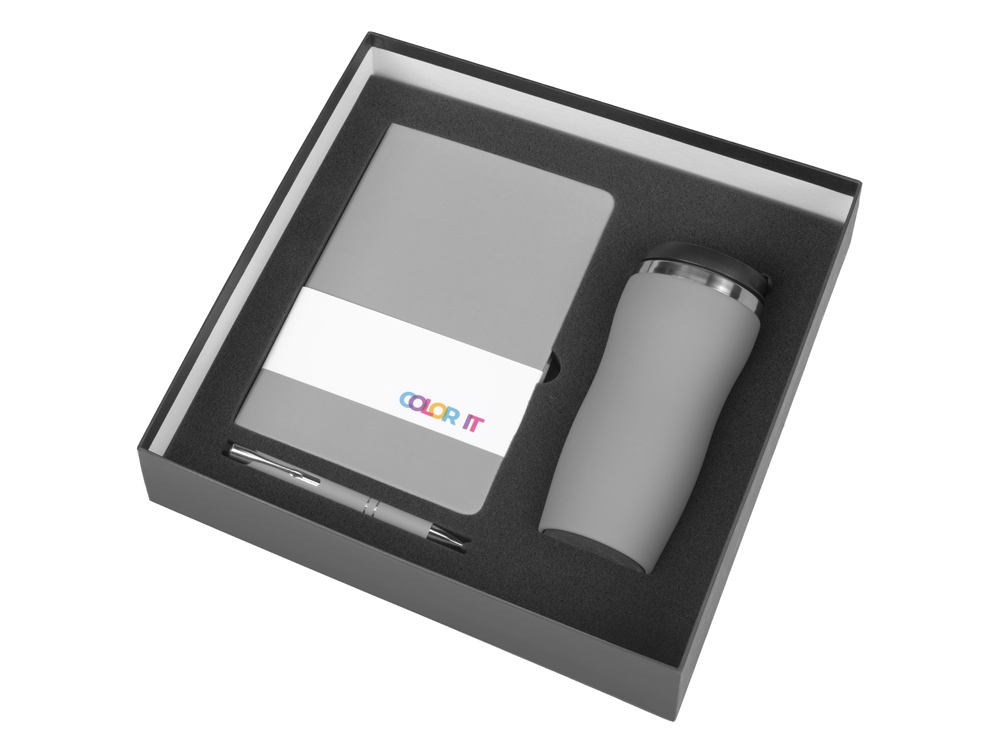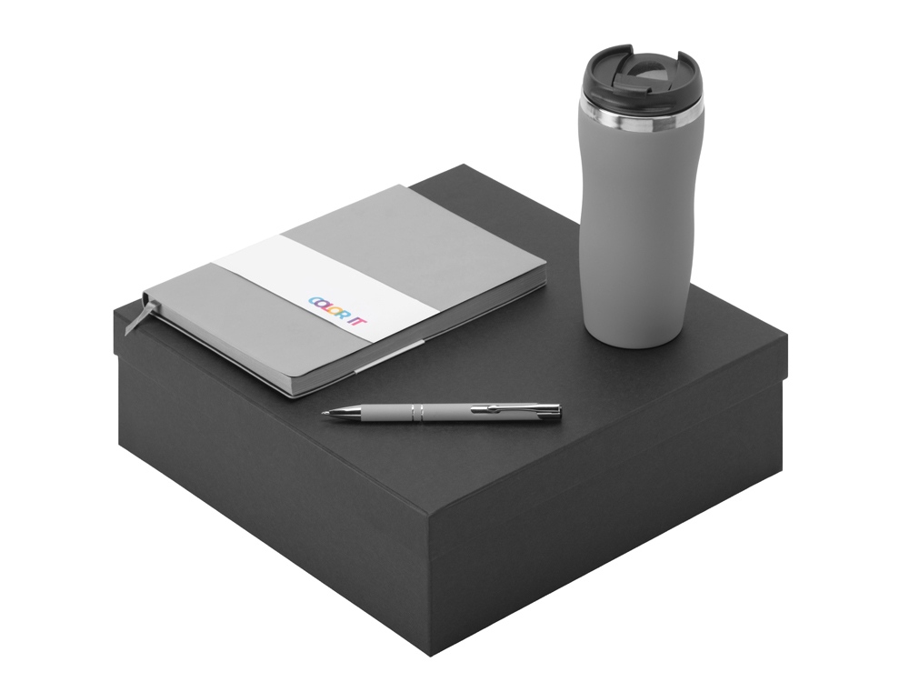 Подарочный набор с блокнотом С1, металлической ручкой и термокружкой, серый