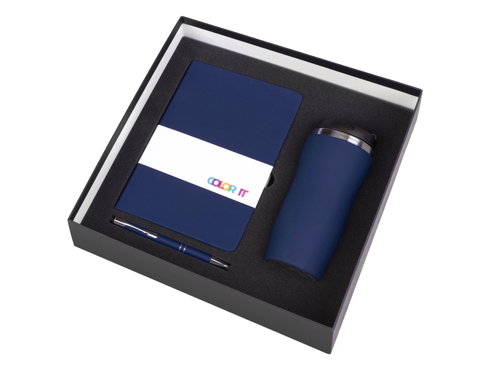 Подарочный набор с блокнотом С1, металлической ручкой и термокружкой, темно-синий
