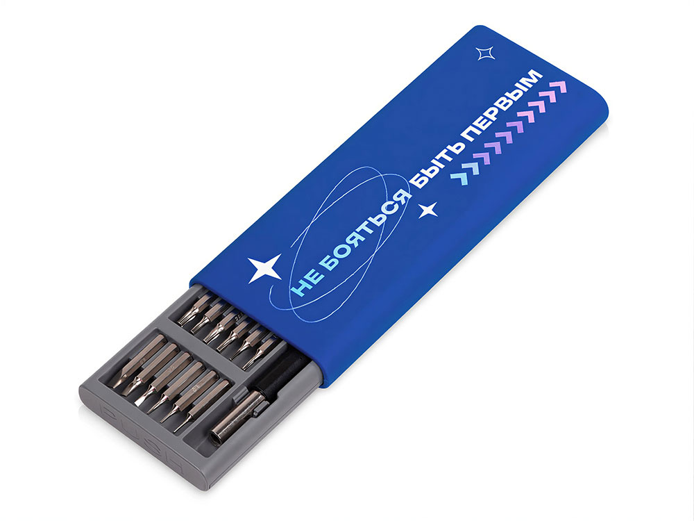 Отвертка с набором из 24 насадок "Bits", темно-синий (уф печать)