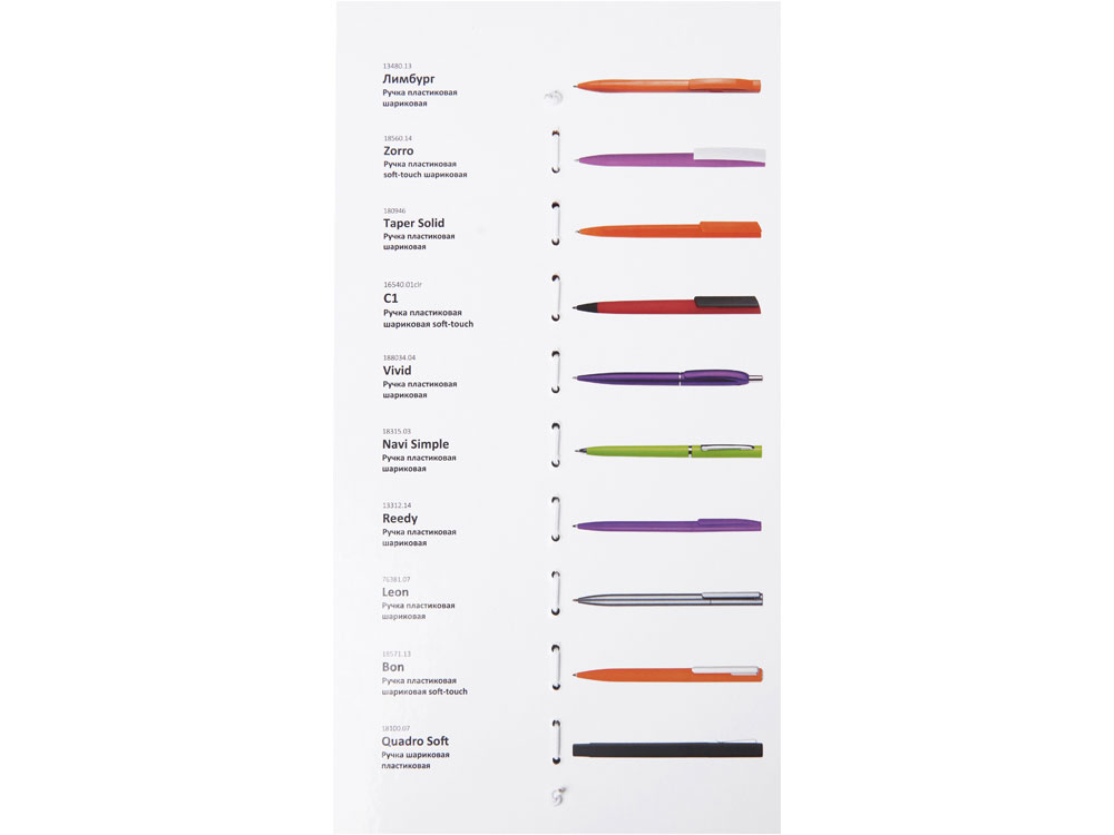 Промо-набор — идеальный инструмент для презентаций: клиенты могут подержать ручки в руках, опробовать их на письме и наглядно увидеть различия между видами нанесения. При этом все самые важные модели собраны в одном легком и компактном наборе.