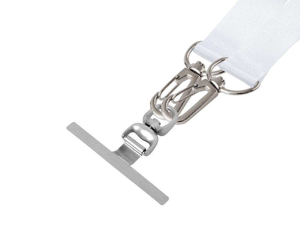 Ланъярд 2 см под сублимацию с 2-мя трендовыми карабинами и металлическим держателем для телефона, серебристый