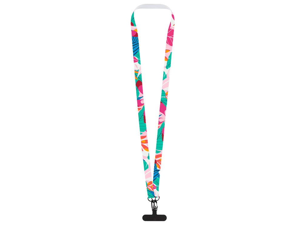 Ланъярд 2 см под сублимацию с 2-мя трендовыми карабинами и узким держателем для телефона из ПЭ, черный