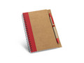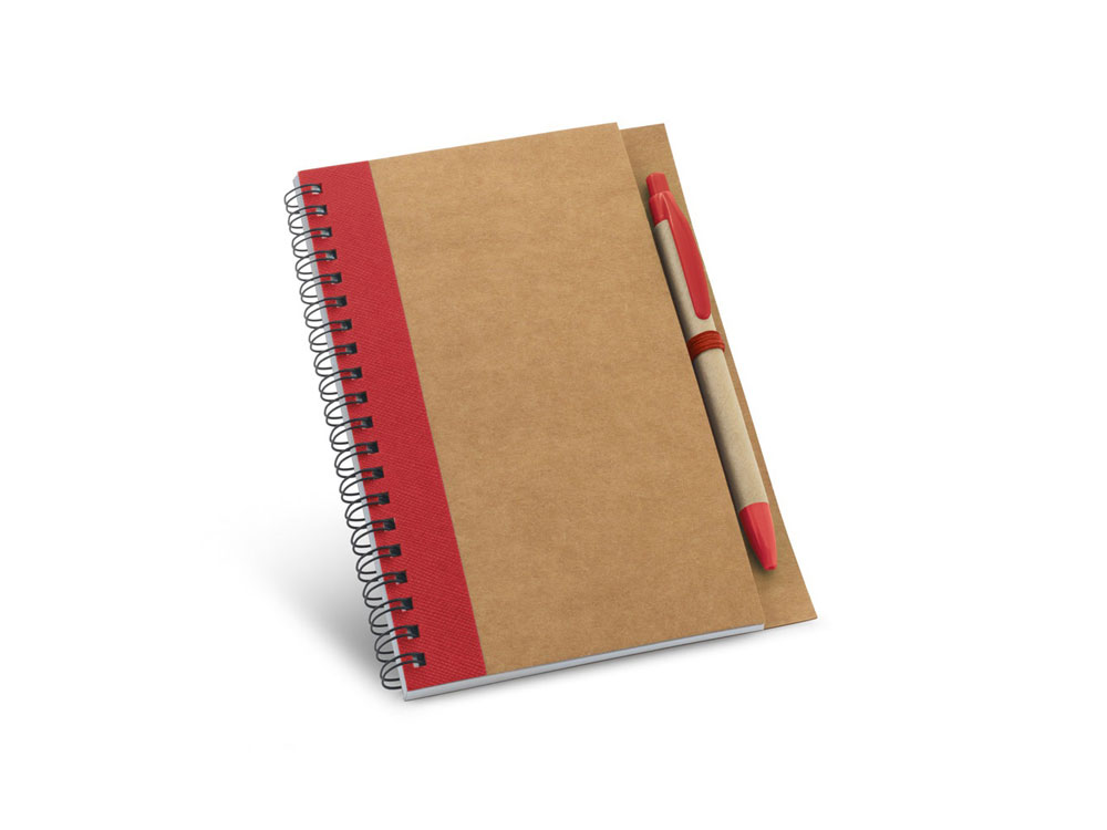 Блокнот формата B6 со спиралью с 120 страницами без линовки из вторично переработанной бумаги и твердой обложкой из крафт-бумаги. Данный набор имеет держатель для ручки и в набор входит ручка.