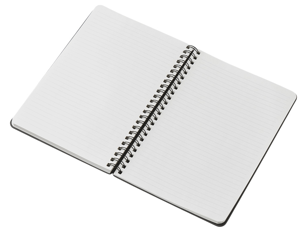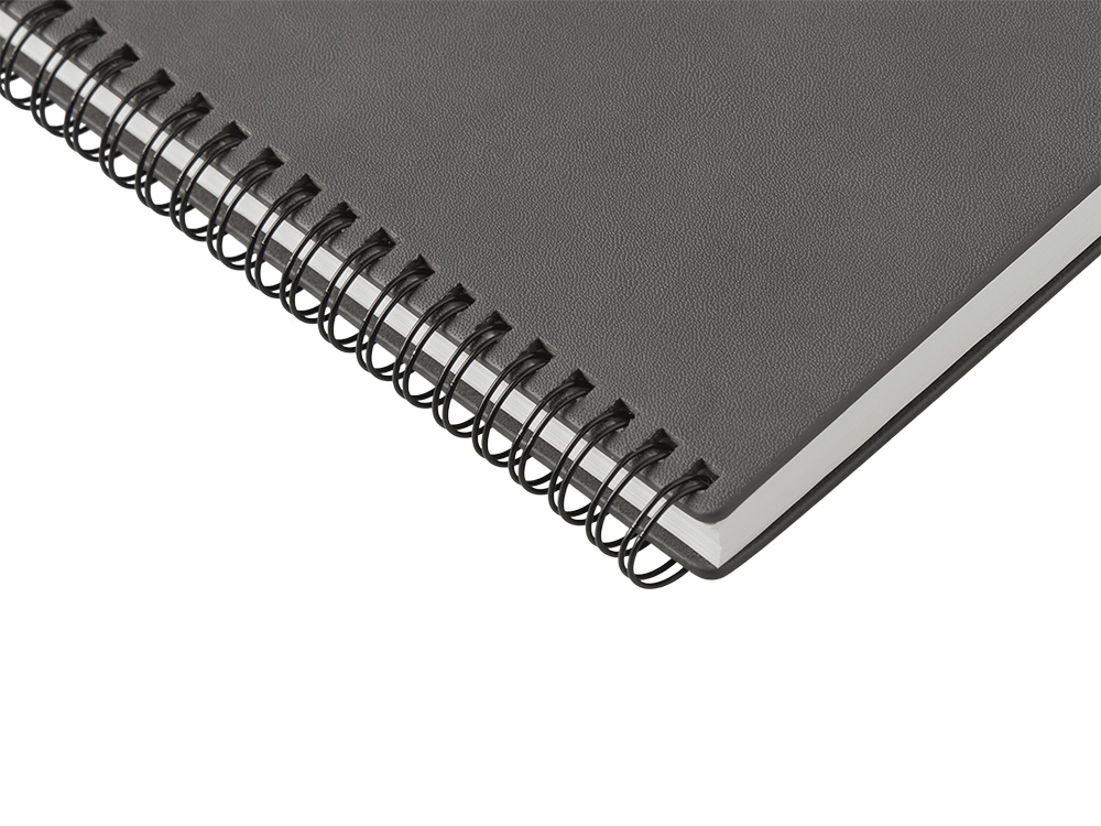 Стильный блокнот на спирали в твёрдой обложке из искусственной кожи.