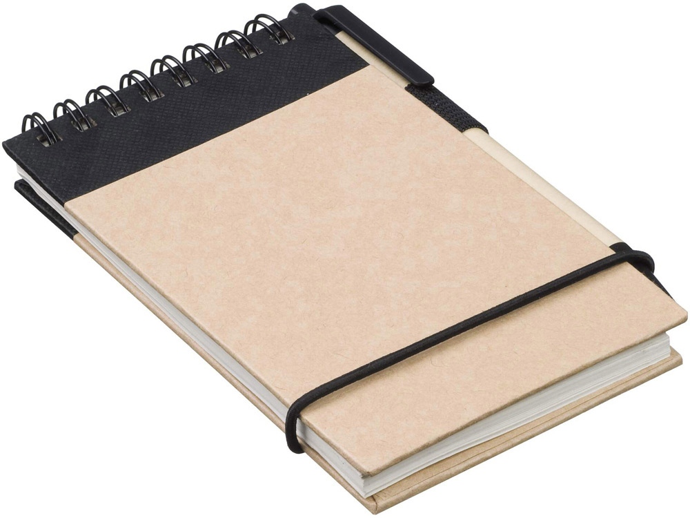 Блокнот Zuse с ручкой. Блокнот с 40 листами линованной бумаги вторичной переработки формата A7 и ручкой под цвет блокнота. Тампопечать (1 цвет (цветные изделия)) на данный товар осуществляется бесплатно. Оплачивается только настройка оборудования в размере 4500 рублей на весь тираж.