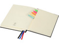 Блокнот Alder формата A5 изготовлен из переработанного пластика, имитирующего кожу, и имеет 192 листа из кремовой бумаги плотностью 80 г/м², оформленные в виде планировщика, идеально подходящего для ведения дневника и поддержания порядка в течение всего года. Имеет две эластичные резинки, три ленточные закладки (черная, красная и синяя), 200 разноцветных липких заметок (по 40 каждого цвета) и удобный бумажный кармашек для отдельных заметок. На задней обложке тиснением нанесен логотип JournalBooks, упакован в картонный слив-бокс белого цвета.