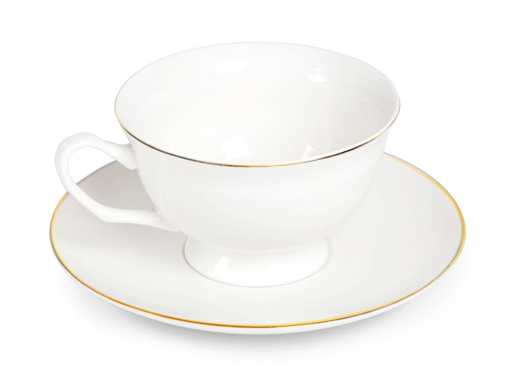 Изящная чайная пара с золотистым кантом от Eat&Bite создаст особенную атмосферу чаепития по-английски.