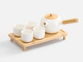 Чайник с боковой ручкой напоминает традиционный кюсу — японский заварочный чайник. Он выглядит утонченно и элегантно, а благодаря ручке, расположенной под углом почти 90 градусов, позволяет легко и аккуратно разливать чай, при этом буквально одним движением руки. Вытянутая форма чашки позволяет максимально насладиться ароматом, а небольшой объем помогает напитку быстрее остыть — чтобы не обжечься при глотке. Подставка делает подачу аккуратной и защищает стол от капель.