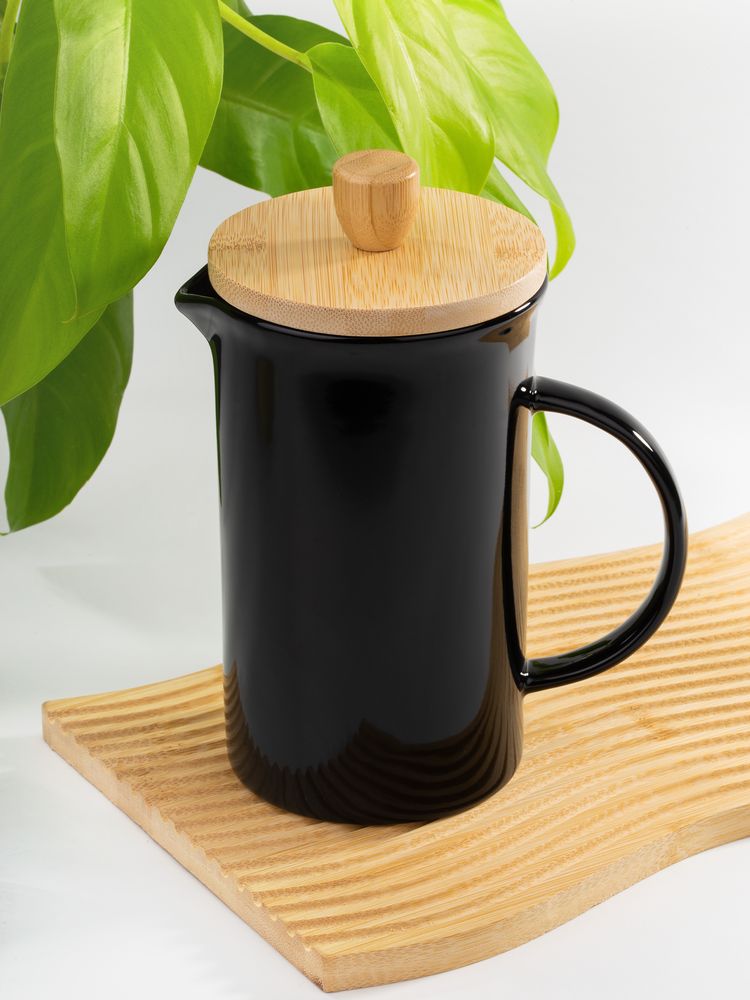 Элегантный керамический френч-пресс Mezzo в глянцевом черном исполнении — функциональный кухонный аксессуар и украшение любого пространства, от уютной домашней кухни до стильного офиса.Емкость 600 мл.