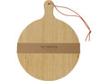 Разделочная доска Delys изготовлена из бамбука и идеально подходит для частных лиц и предприятий, которые предпочитают более экологичные товары. Диаметр доски: 30,5 см. Длина ручки: 8 см. Толщина доски: 1,4 см. Не подходит для микроволновой печи или посудомоечной машины.