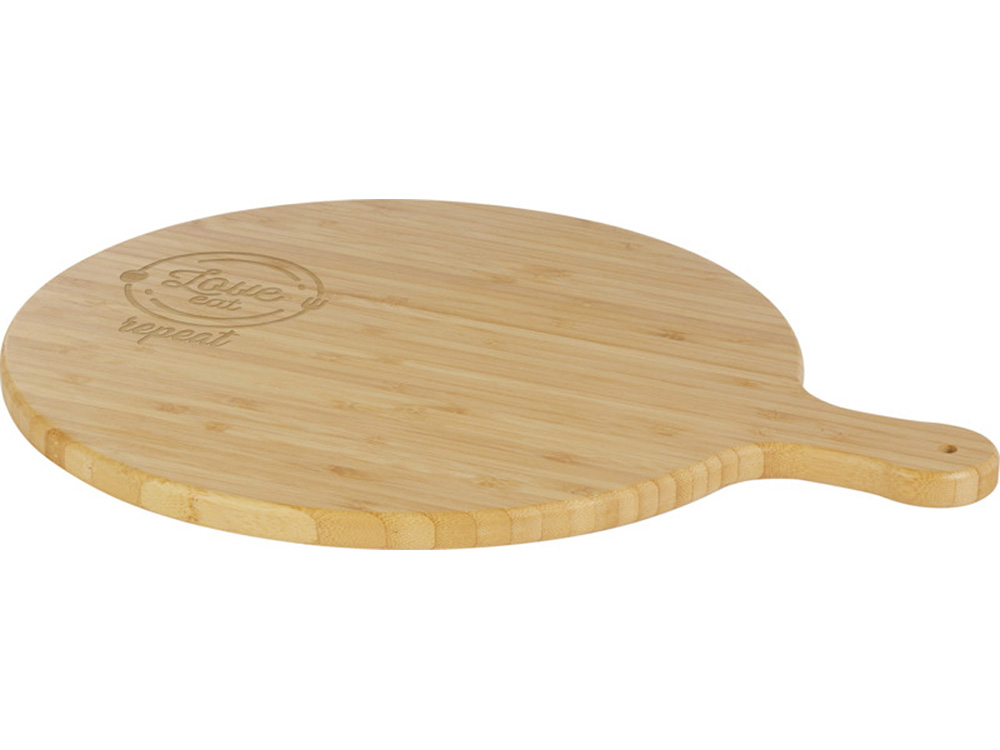 Разделочная доска Delys изготовлена из бамбука и идеально подходит для частных лиц и предприятий, которые предпочитают более экологичные товары. Диаметр доски: 30,5 см. Длина ручки: 8 см. Толщина доски: 1,4 см. Не подходит для микроволновой печи или посудомоечной машины.