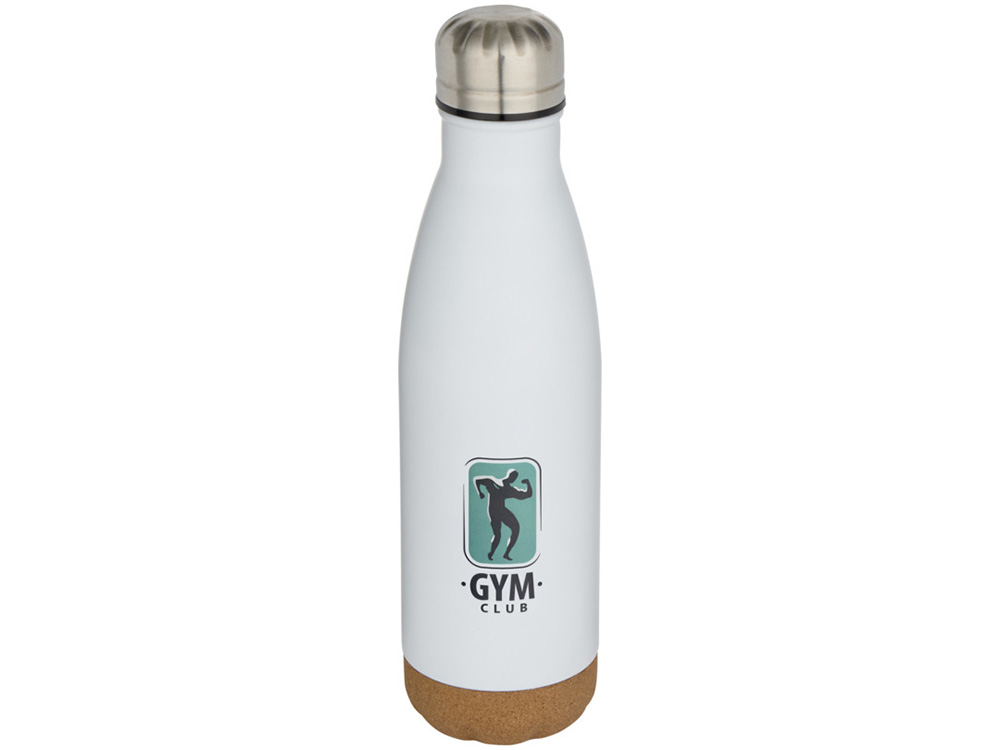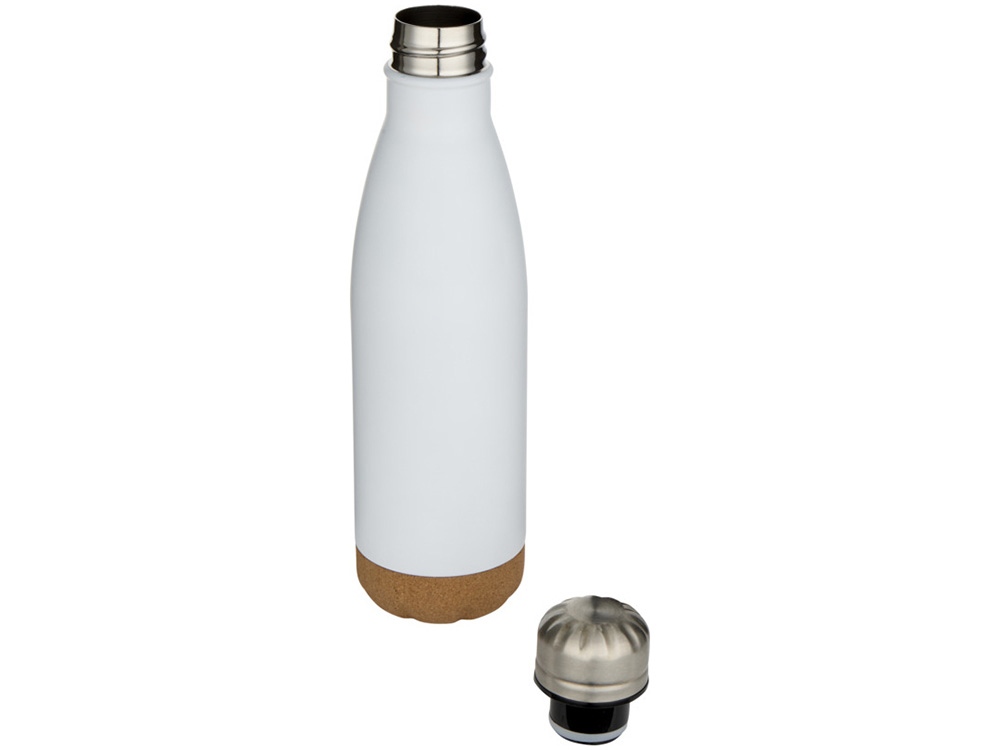 Бутылка для воды Cove из нержавеющей стали с двойными стенками и вакуумной изоляцией, объемом 500 мл, с пробковыми деталями - Белый
