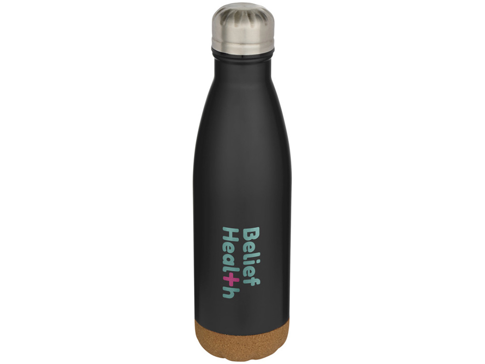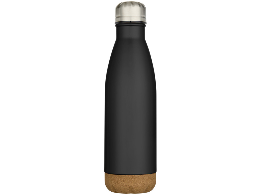 Бутылка для воды Cove из нержавеющей стали с двойными стенками и вакуумной изоляцией, объемом 500 мл, с пробковыми деталями - сплошной черный