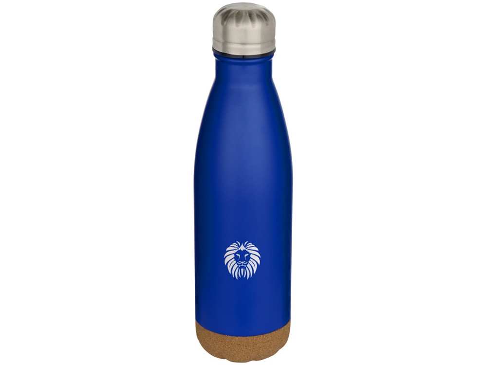 Бутылка для воды Cove из нержавеющей стали с двойными стенками и вакуумной изоляцией, объемом 500 мл, с пробковыми деталями - Ярко-синий