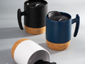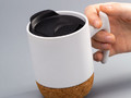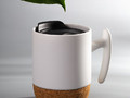 Эта кружка — стильное сочетание функциональности и дизайна. Корпус из керамики сохраняет напиток теплым, нижняя часть из пробки защищает поверхность от нагрева и скольжения, а пластиковая крышка предотвращает проливание. Эргономичная ручка делает использование особенно удобным.