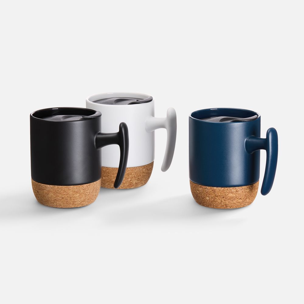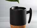 Эта кружка — стильное сочетание функциональности и дизайна. Корпус из керамики сохраняет напиток теплым, нижняя часть из пробки защищает поверхность от нагрева и скольжения, а пластиковая крышка предотвращает проливание. Эргономичная ручка делает использование особенно удобным.