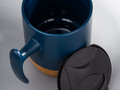 Эта кружка — стильное сочетание функциональности и дизайна. Корпус из керамики сохраняет напиток теплым, нижняя часть из пробки защищает поверхность от нагрева и скольжения, а пластиковая крышка предотвращает проливание. Эргономичная ручка делает использование особенно удобным.