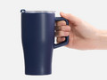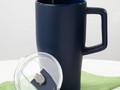 Эргономичная ручка удобно лежит в руке, а прозрачная крышка с отверстием для питья не дает содержимому разлиться на ходу или быстро остыть. Последнее особенно важно с учетом большого объема — 520 мл чая, кофе или какао хватит надолго.