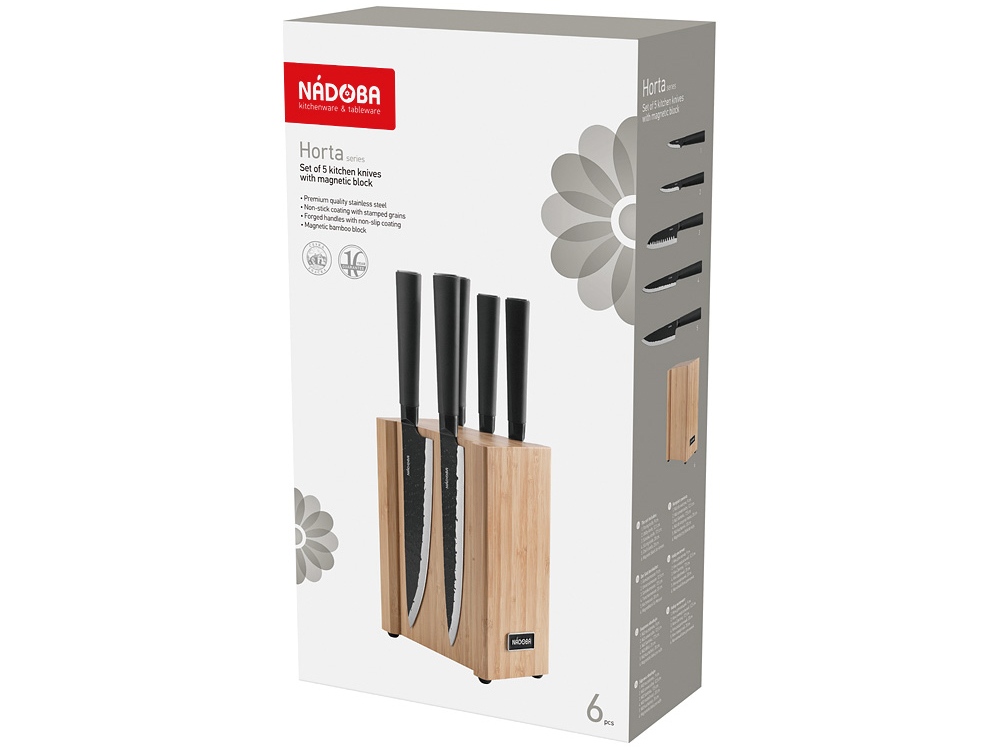 Набор из 5 кухонных ножей на магнитном блоке, NADOBA, серия HORTA