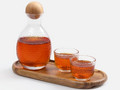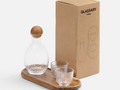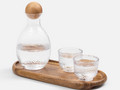 Этот набор для крепких напитков — как маленький арт-объект. Текстурированное отбивное стекло графина и стопок создает живую игру бликов и отсветов, а натуральное дерево подноса и пробки добавляет теплый природный акцент.