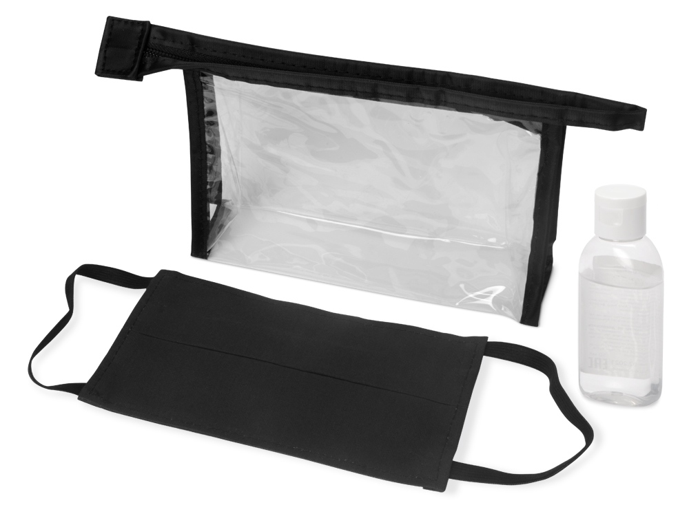 Самое необходимое всегда под рукой - в любом месте и при любой ситуации. Многоразовая хлопковая маска черного цвета и антисептик в стильной пластиковой косметичке поместятся в любой сумке. Тампопечать (1 цвет (цветные изделия)) на данный товар осуществляется бесплатно. Оплачивается только настройка оборудования в размере 4500 рублей на весь тираж.