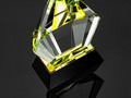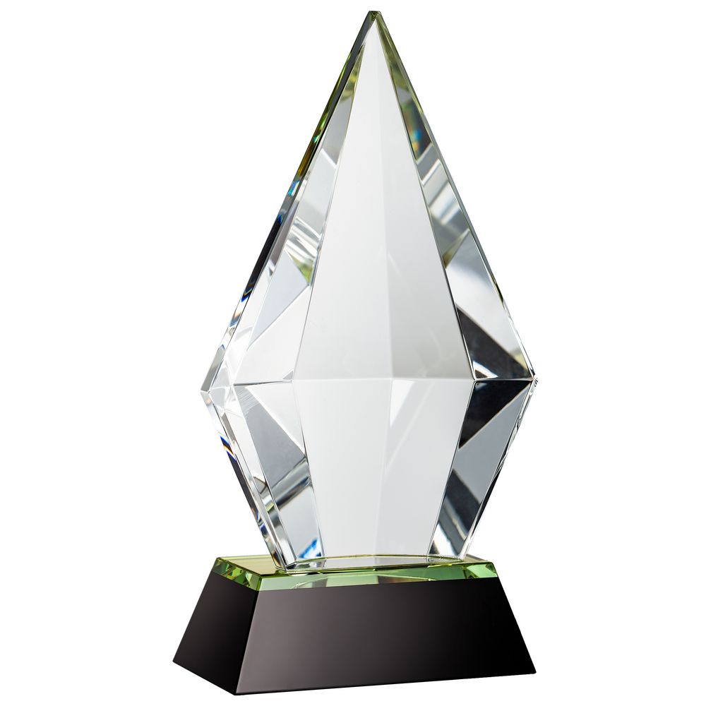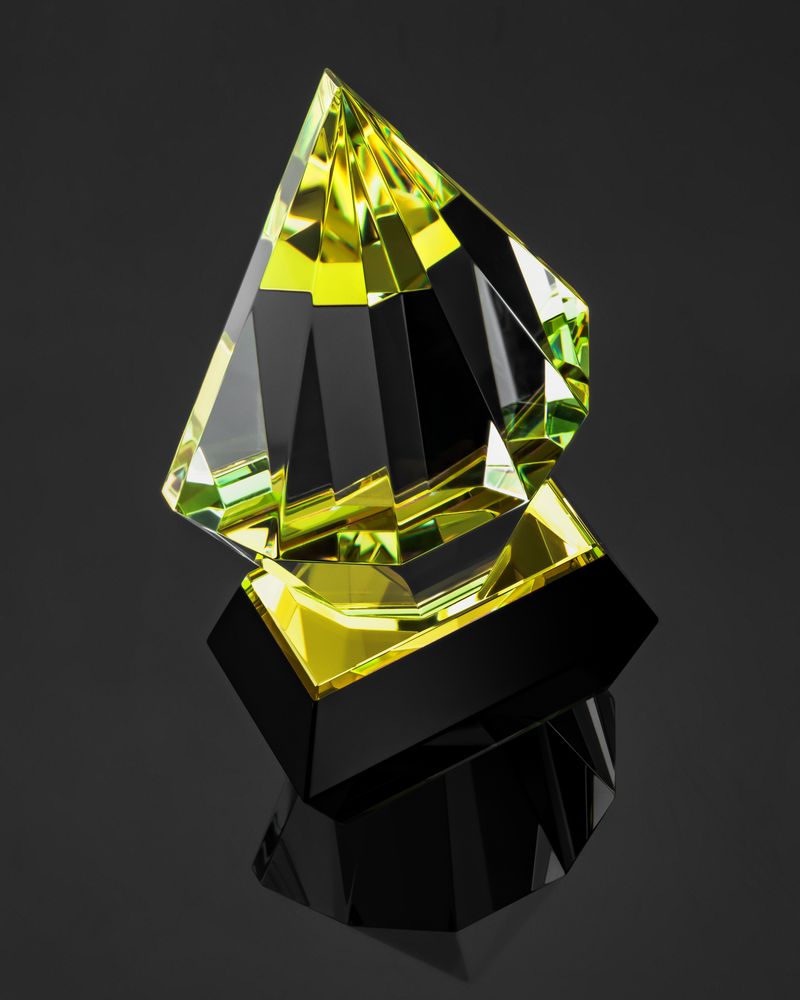 Стела изготовлена из стекла К9, в основе которого лежит оптическое боросиликатное стекло. Эту марку стекла отличает низкий процент посторонних включений, высокий показатель преломления и высокая прозрачность — идеальные качества для изготовления наград премиального уровня.