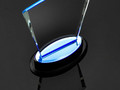 Стела изготовлена из стекла К9, в основе которого лежит оптическое боросиликатное стекло. Эту марку стекла отличает низкий процент посторонних включений, высокий показатель преломления и высокая прозрачность — идеальные качества для изготовления наград премиального уровня.