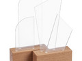 Стела Twin — это массивное основание из бука с гладкой фактурой и легкая прозрачная вставка из двух листов акрила. Идеальный баланс устойчивости и легкости, который важен не только для создания награды привлекательной формы, но и для достижения результата, который этой наградой будет отмечен.