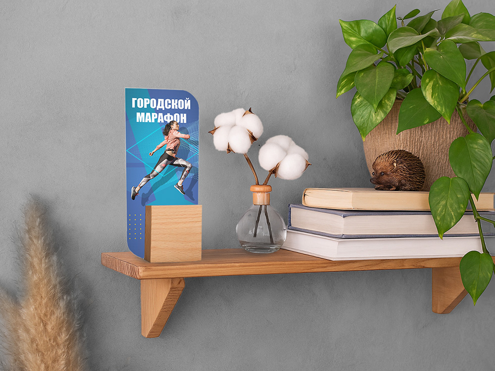 Наградная стелла из бука и акрила. Акриловую часть можно полностью запечатать методом УФ-печати. Гравировка (CO2 лазер) (Без чернения) на данный товар осуществляется бесплатно. Оплачивается только настройка оборудования в размере 1100 рублей на весь тираж.