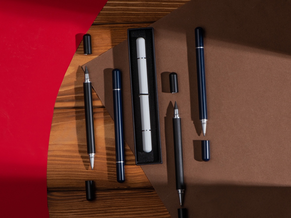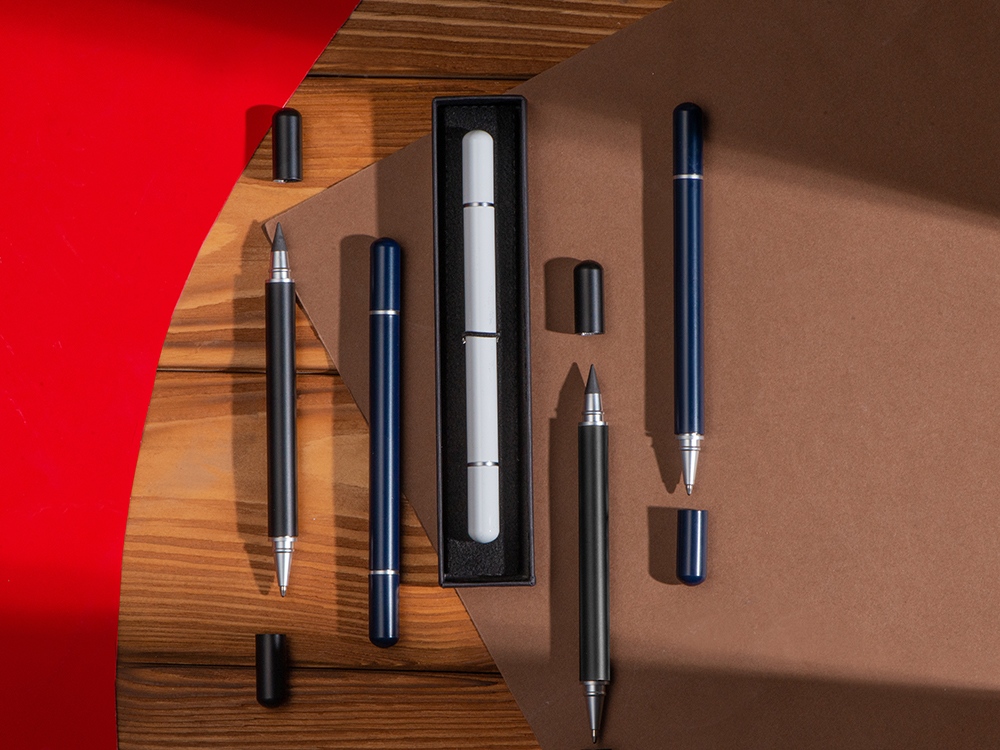 Стильный аксессуар 2в1: с одной стороны - ручка, с другой - вечный карандаш, который практически невозможно исписать! Гравировка (оптоволоконный лазер) (Без чернения) на данный товар осуществляется бесплатно. Оплачивается только настройка оборудования в размере 2700 рублей на весь тираж.
