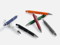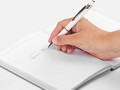 Металлическая ручка с покрытием софт-тач и серебристыми деталями.