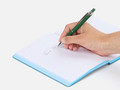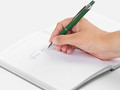 Металлическая ручка с покрытием софт-тач и серебристыми деталями.