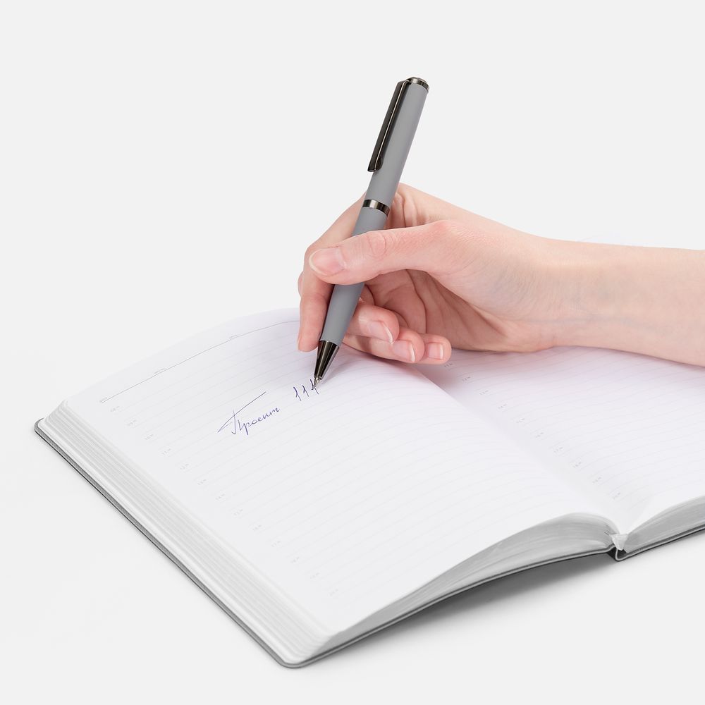 Шариковая ручка классического дизайна с матовым корпусом и металлическими деталями.