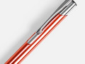 Яркая шариковая ручка с глянцевым цветным корпусом и хромированными деталями.