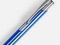 Яркая шариковая ручка с глянцевым цветным корпусом и хромированными деталями.