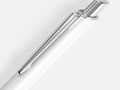 Металлическая ручка с матовым корпусом и хромированными деталями.
