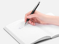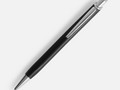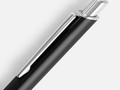 Металлическая ручка с матовым корпусом и хромированными деталями.