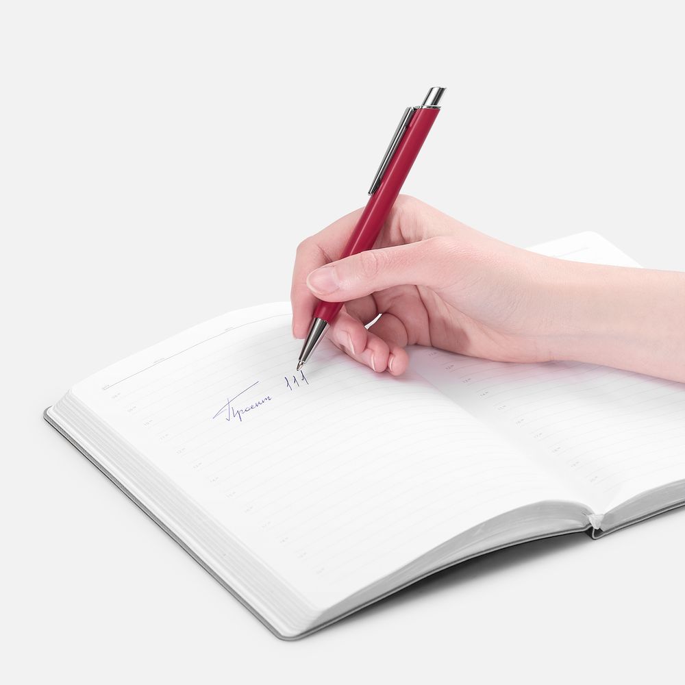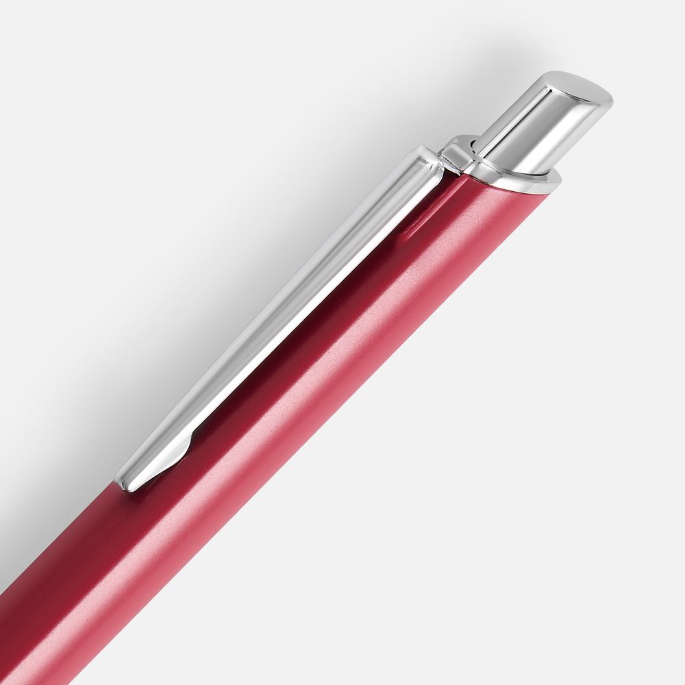 Металлическая ручка с матовым корпусом и хромированными деталями.