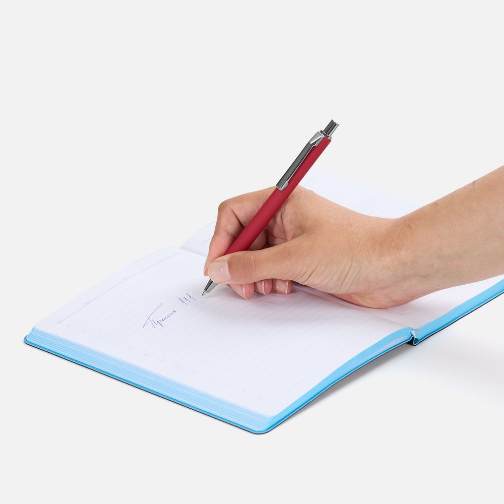 Шариковая ручка с покрытием софт-тач и хромированными деталями. Клип оригинальной формы.