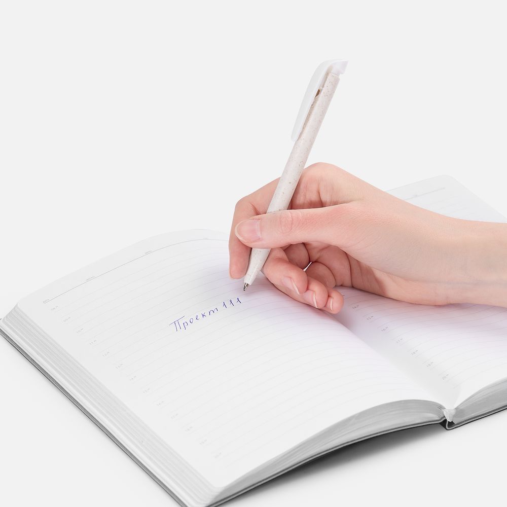 Корпус ручки изготовлен из пластика, смешанного с волокнами пшеницы. Включение в состав пластика пшеничных волокон — это шаг на пути к созданию продукции из возобновляемых материалов и сокращению использования синтетических полимеров.