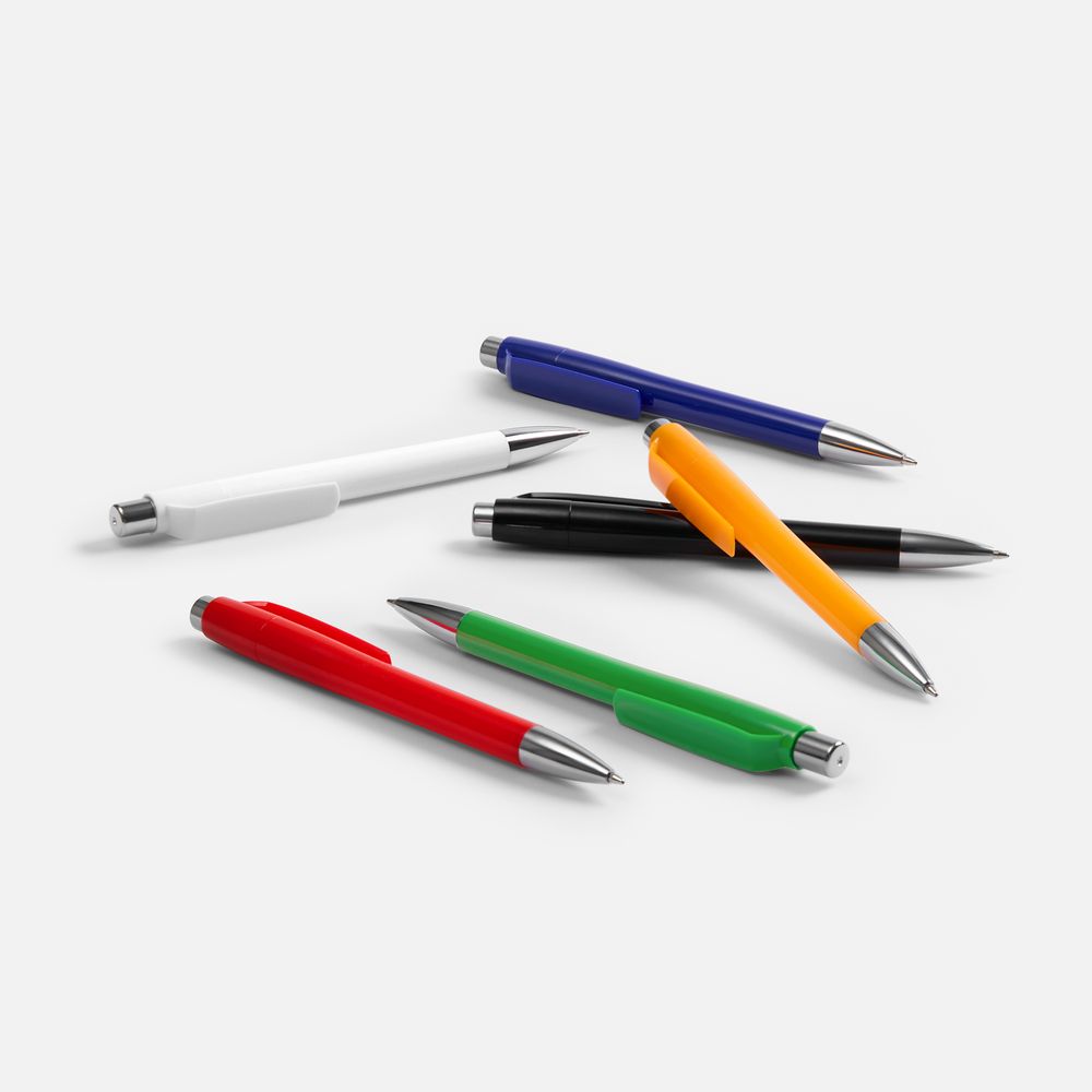Пластиковая ручка с глянцевым корпусом и хромированными деталями. Большой клип идеален для нанесения логотипа компании.
