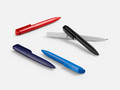 Шариковая ручка с эргономичным треугольным корпусом из матового пластика.