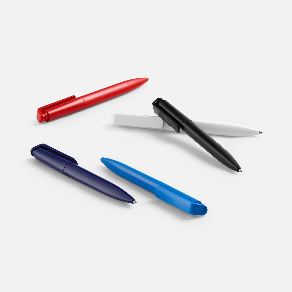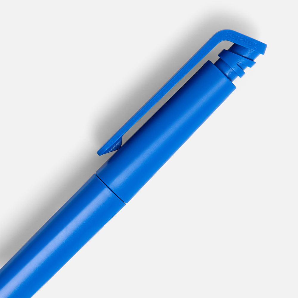 Шариковая ручка с эргономичным треугольным корпусом из матового пластика.