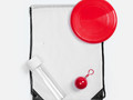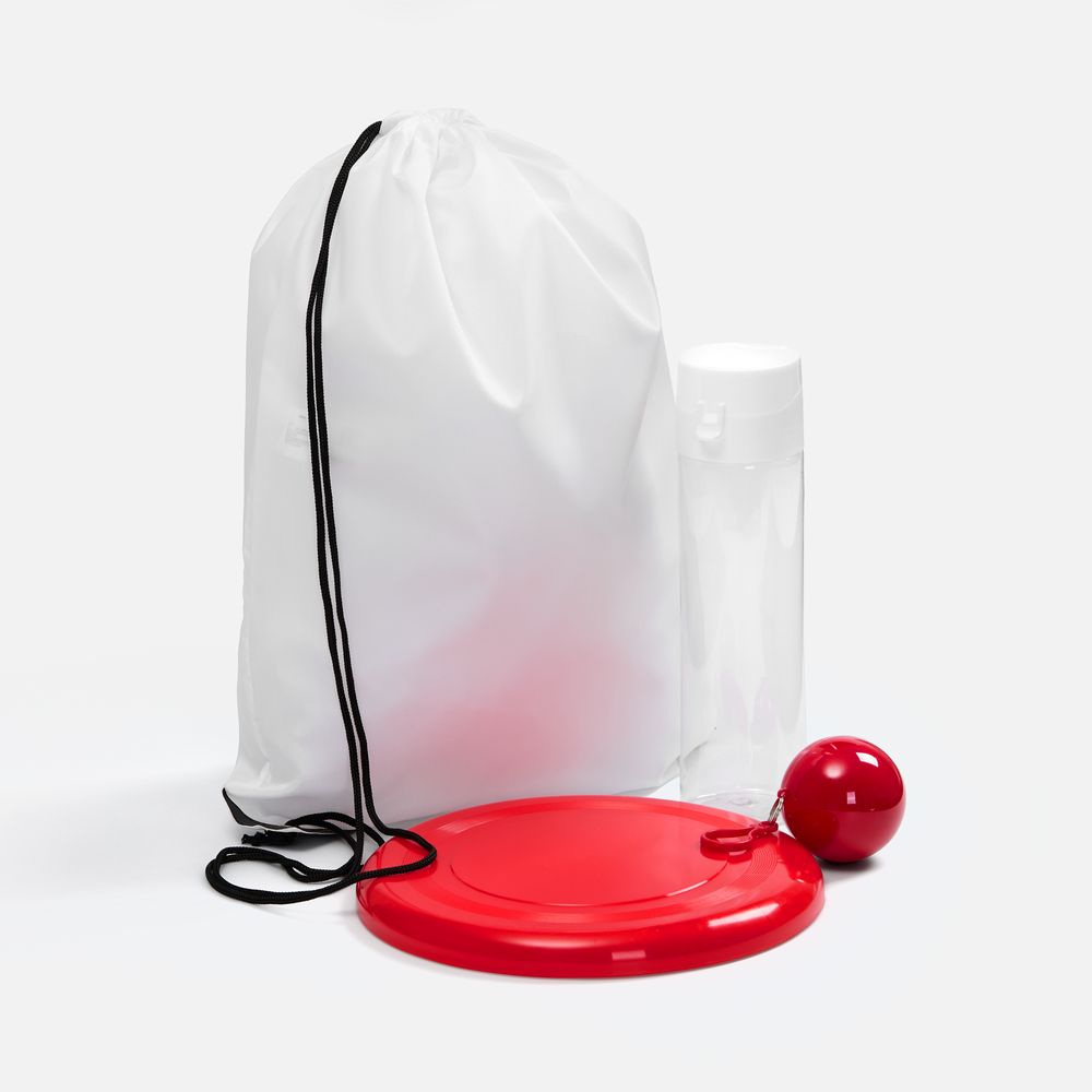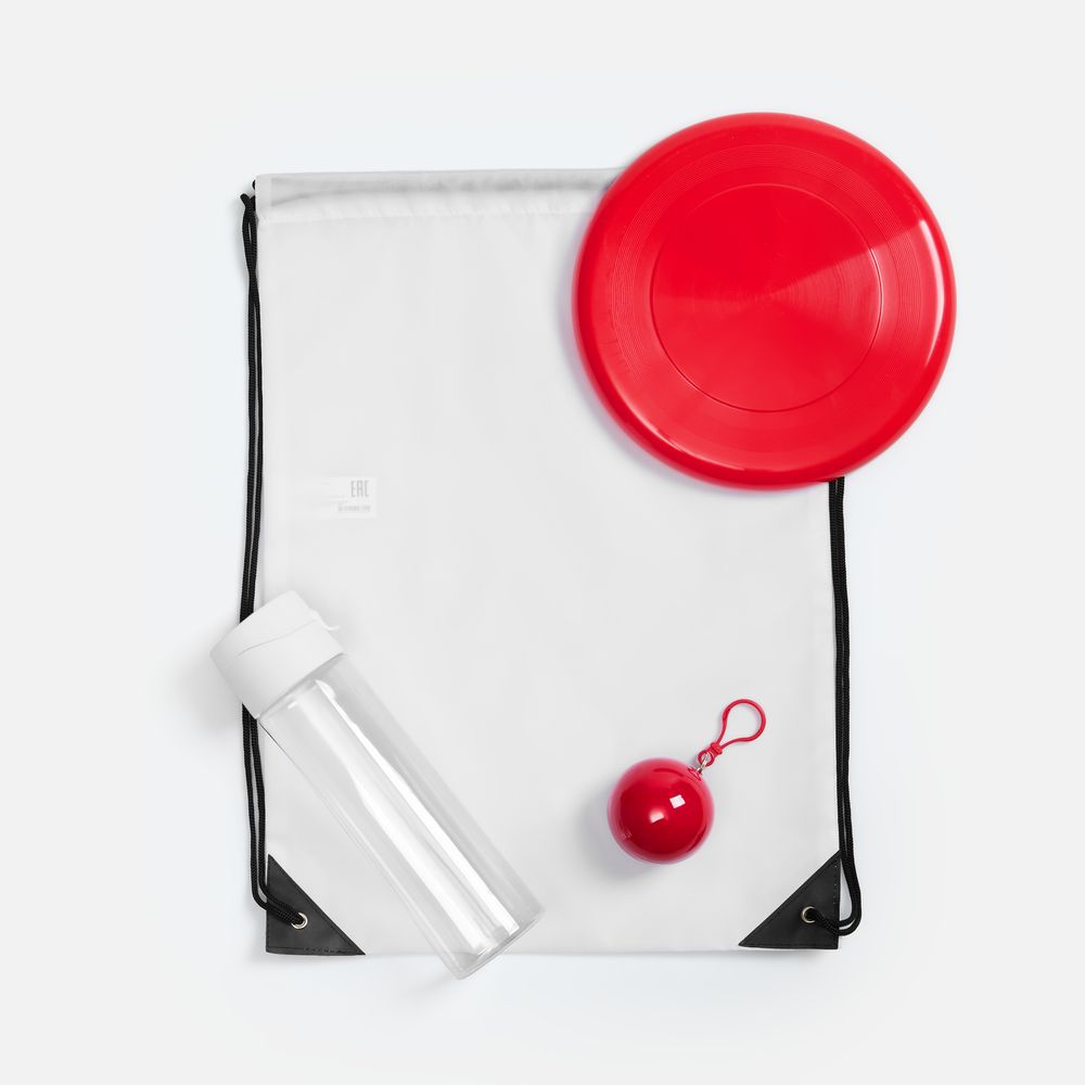 - Практичность — бутылка, тарелка-фрисби и дождевик в футляре решают базовые потребности на отдыхе.