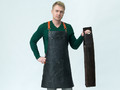Набор: фартук из натуральной кожи в тубусе, черный с рыжими ремнями