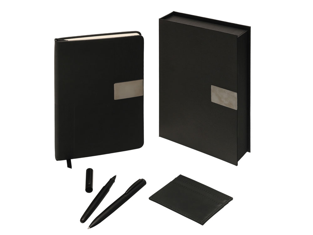 Подарочный набор "Goethe" с блокнотом А5, 2-мя ручками и картхолдером, черный